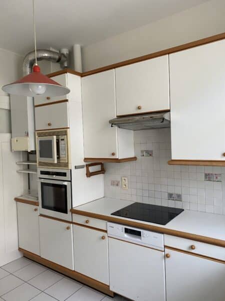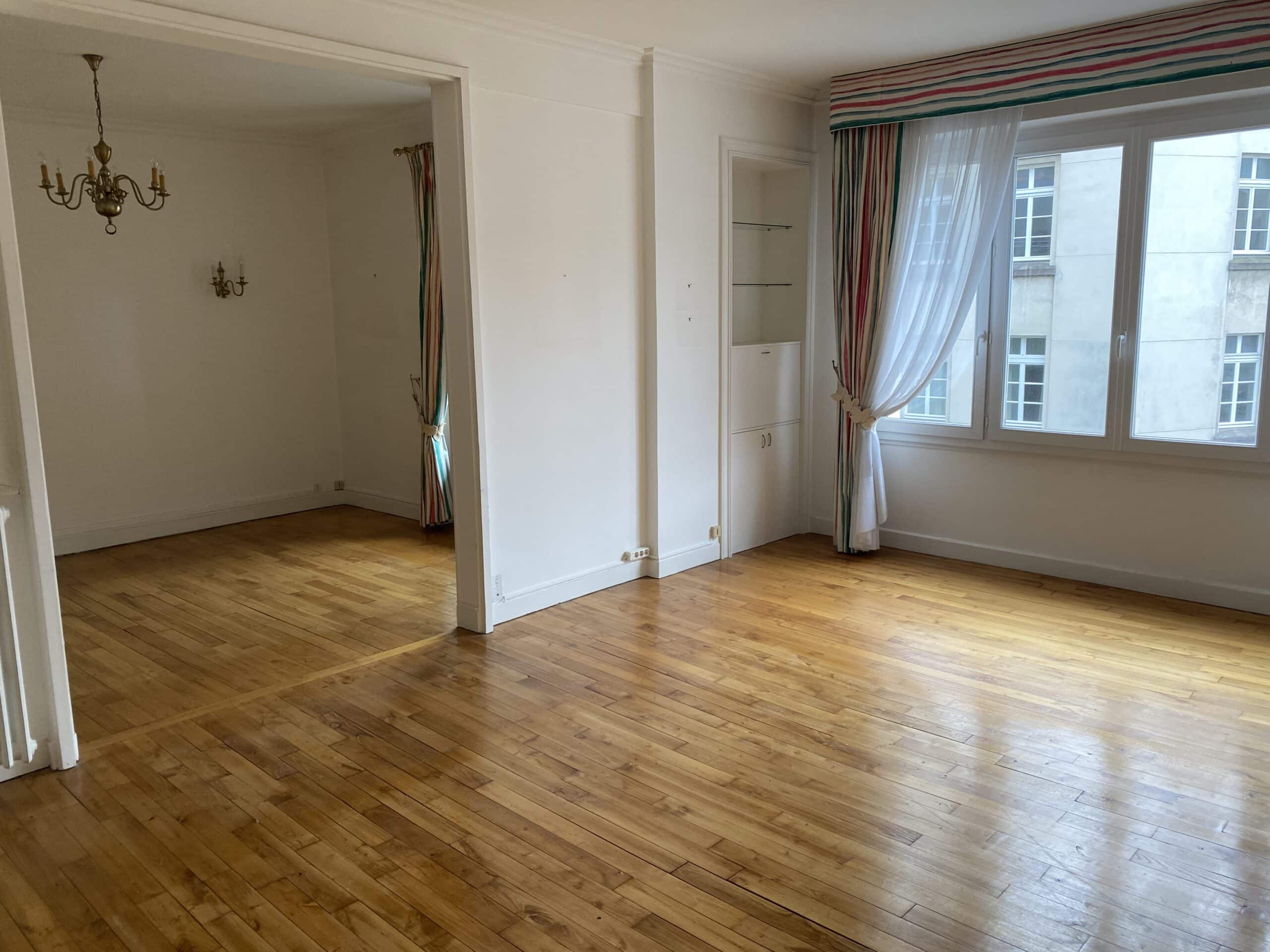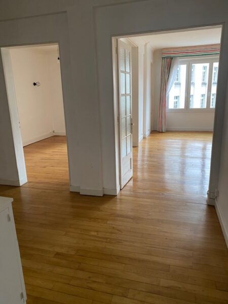 Idéalement situé CENTRE VILLE Cathédrale proche Erdre, appartement familial de 110,10 M2, très lumineux et traversant, Est/Ouest, au 2 ème étage avec ascenseur, entièrement repeint en blanc, et sur parquet comprenant : vaste entrée avec placard, séjour 24,55 m2, salon ou bureau 14,25 M2, cuisine aménagée et équipée (plaque, four, micro-ondes, hotte, lave-vaisselle), buanderie avec branchement machine, 2 chambres dont une avec salle d’eau, salle de bains, toilettes séparées.